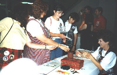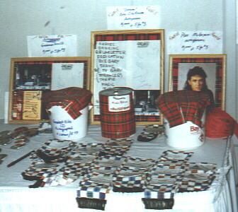 had a table set up with buttons for sale, Kathy Ritchie's trivia games raffle,